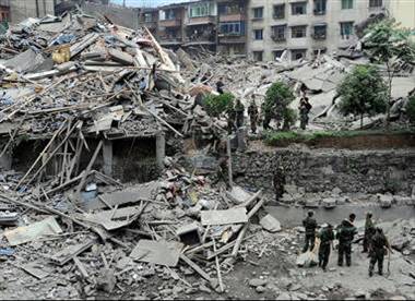 Collapsed buildings in Beichuan