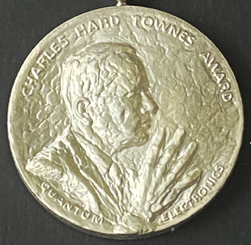 Established in 1980, the Townes Medal recognizes an individual or group for outstanding experimental or theoretical work, discovery or invention in the field of quantum electronics. The medal honors Charles Hard Townes, whose pioneering contributions to masers and lasers led to the development of the field of quantum electronics. Bell Laboratories, Hewlett-Packard, The Perkin Fund and students and colleagues of Charles Townes endowed the award.