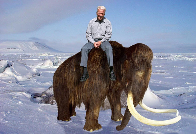 Jan Mangerud riding a mammoth (photo taken at Svalbard where Jan Mangerud worked for several years).